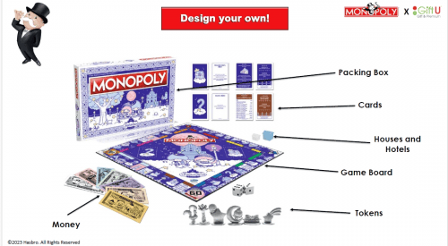 例如香港著名国际学校耀中,在其90周年校庆定制了彰显校园特色的monopoly square version,以蓝色作为主题色,将地图中的小方格改为校园的各个教室和特色角落,机会卡和命运卡中体现了校园生活的乐趣。并将地产大亨游戏作为学生返校活动,使学生在悠长的假期之后再次快速融入校园生活。