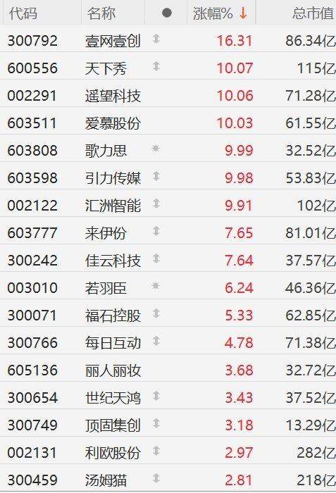 格隆汇1月16日|a股市场小红书概念股继续活跃,其中,壹网壹创涨超16%,遥望科技、爱慕股份、引力传媒(603598)、汇洲智能等多股10cm涨停,佳云科技(300242)涨超7%,每日互动(300766)涨超5%,